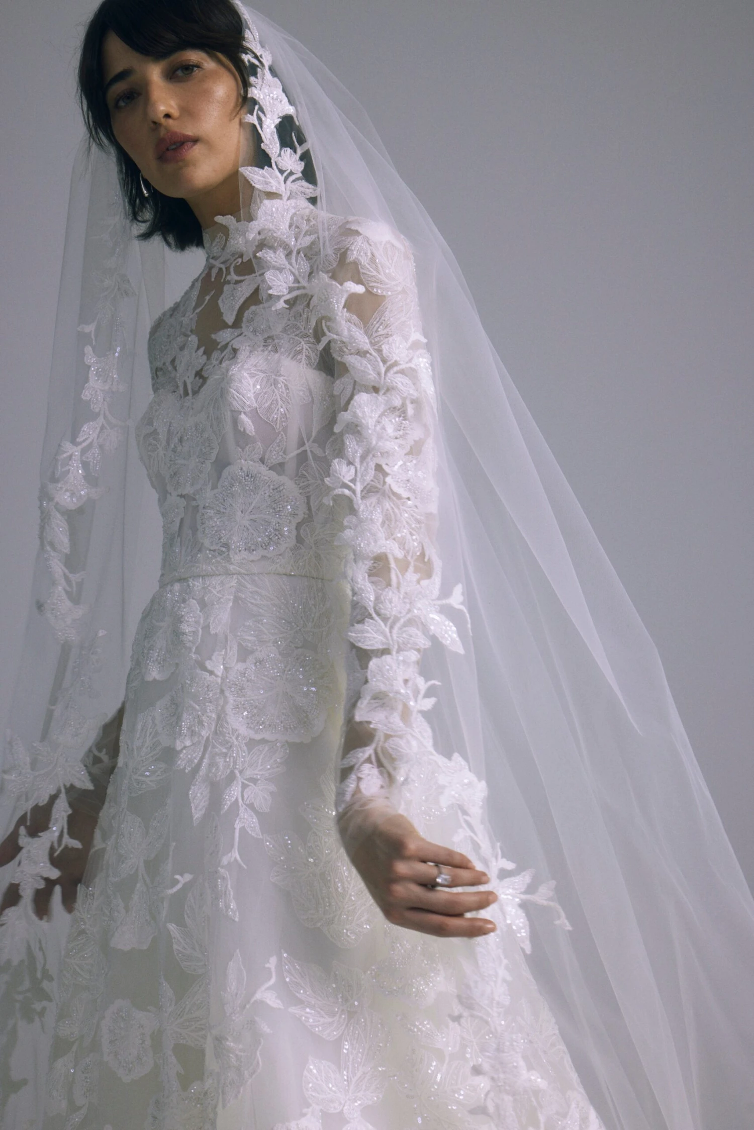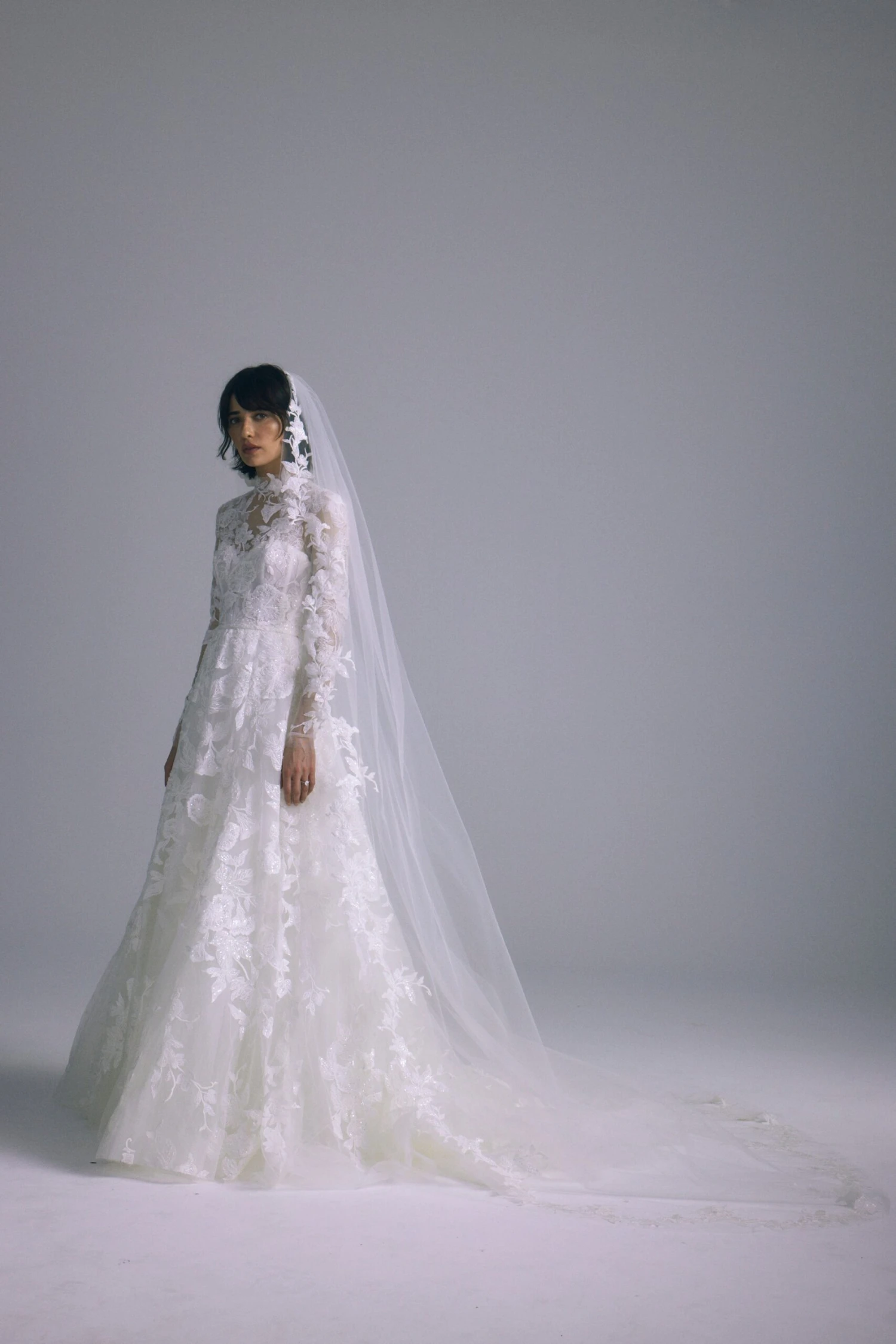 Leaf embellished cathedral veil.